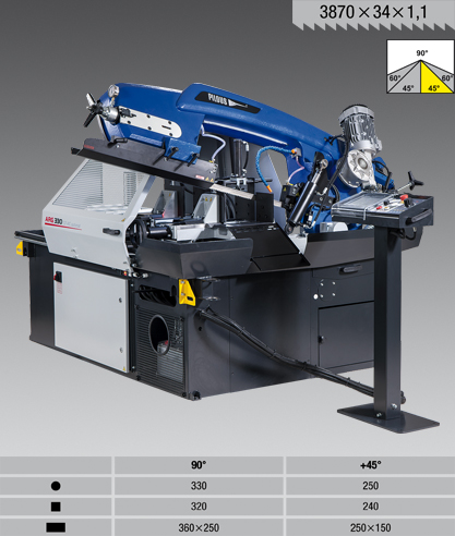 przemysłowym cięciu pełnych materiałów, a tym samym zapewnia wysoką żywotność samych taśm tnących . W tej przecinarki zastosowana jest taśma tnąca o rozmiarze 34 x 1,1 mm.